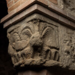 The buildings of the Premonstratensian monastery of Zsámbék are first mentioned in the written sources in 1234. The founders of the church were members of the Aynard family, who migrated to Hungary before 1258. Their first generations could have already been buried here. Archeological findings confirm the existence of a much smaller rural church at the location of the present one. The building type and the stylistic context of the ornaments could allow a more exact dating. King Matthias donated the monastery to the Pauline Fathers in 1477, who have later renovated the church in late Gothic style.